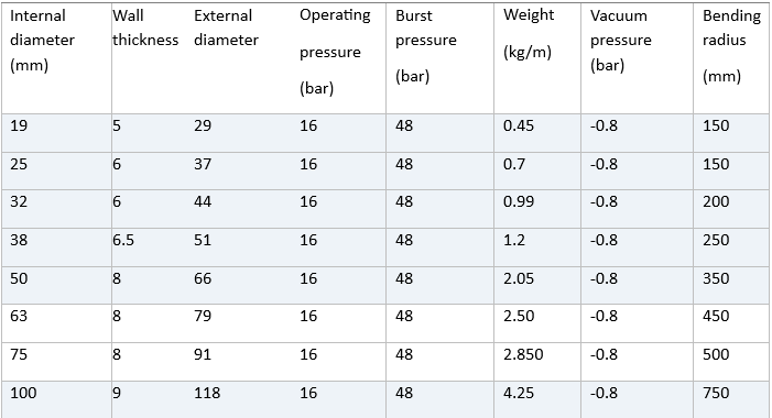 - inner layer: UPE, white, non-porous, without plasticisers, smooth with a black spiral charge-conducting strip