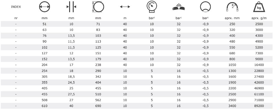 • Reinforcements: Synthetic fibres with integrated steel wire helix