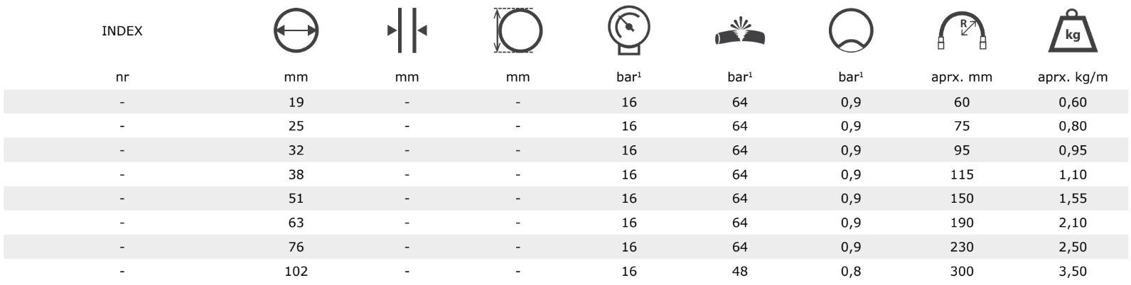 abrasion resistant. Fabric impression - Working pressure up to: 16 bar