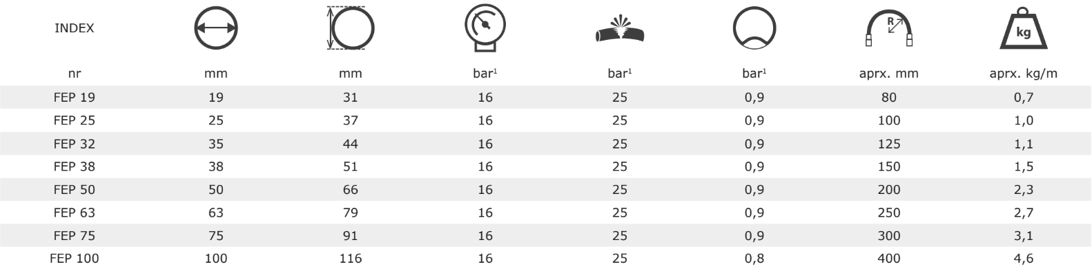 and flame resistant, resistant against weather and ageing - Working pressure up to: 16 bar