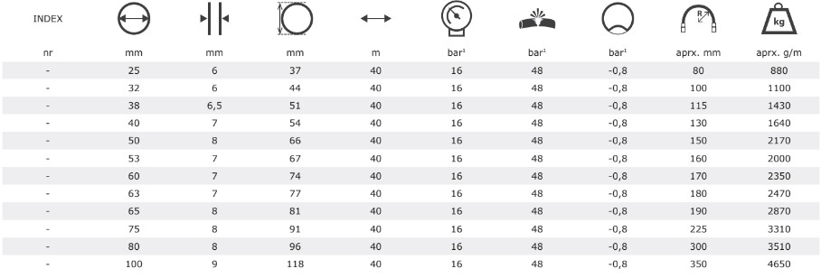 ozone, weather and UV - Working pressure up to: 16 bar / 232 psi