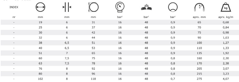 • Working pressure up to: 16 bar