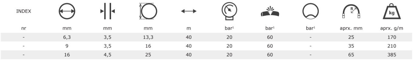 • Cover: EPDM, black, smooth, abrasion resistant, resistant to ozone,