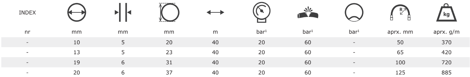 weather and UV - Working pressure up to: 20 bar / 290 psi