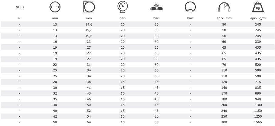 resistant to ozone, weather and UV - Working pressure up to: 20 bar / 290 psi