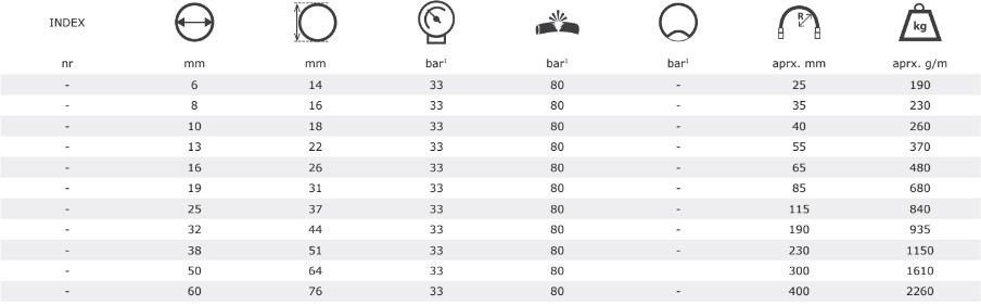 ozone, weather and UV - Working pressure up to: 33 bar / 479 psi