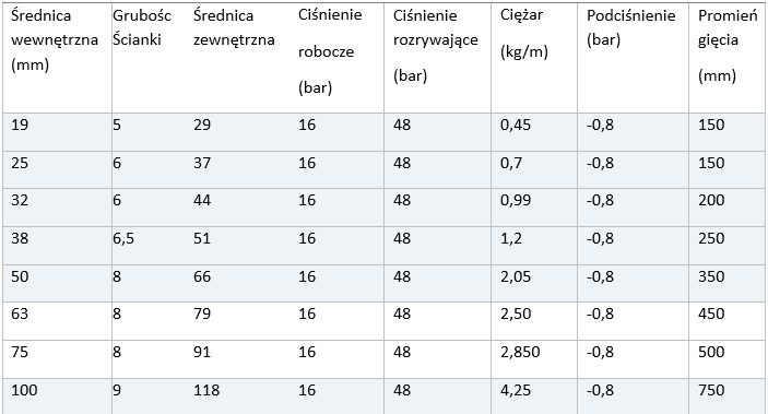 - warstwa wewnętrzna: UPE, biały, nieporowaty, bez plastyfikatorów, gładki z czarnym spiralnym pasem przewodzącym ładunki